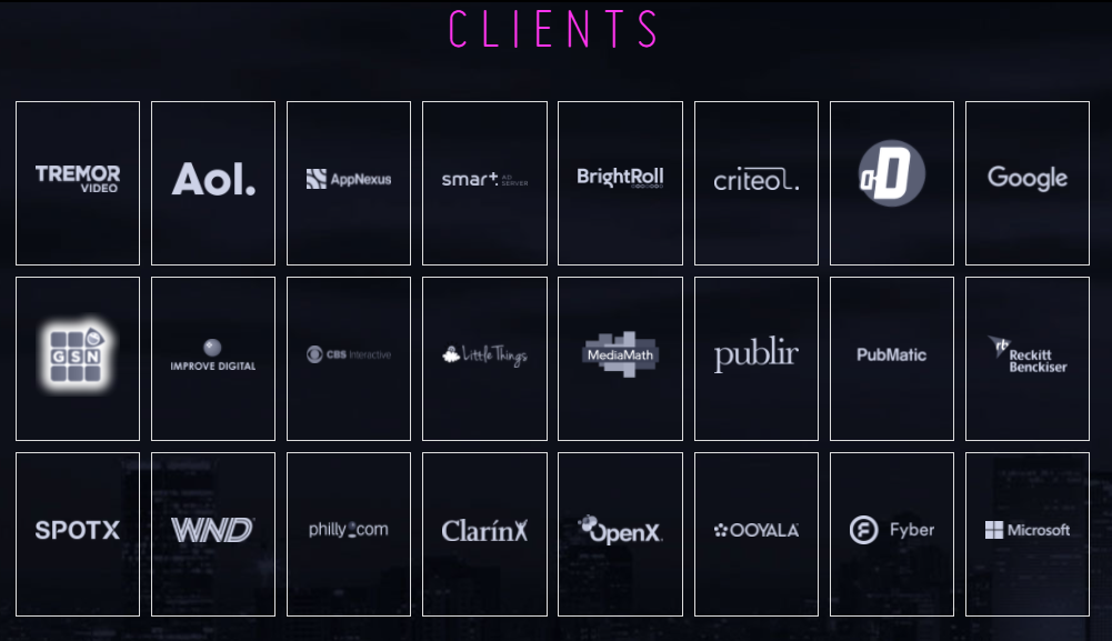 Brightcom Group consolidates Ad-tech, New Media and IoT based businesses across the globe, primarily in the digital eco-system. Clients include leading blue chip advertisers like Airtel, British Airways, Coca-Cola, Hyundai Motors, ICICI Bank, ITC, ING, Lenovo, LIC, Maruti Suzuki, MTV, P&G, Qatar Airways, Samsung, Viacom, Sony, Star India, Vodafone, Titan, and Unilever. Publishers include Facebook, LinkedIn, MSN, Twitter, and Yahoo! Brightcom works with agencies like Havas Digital, JWT, Mediacom, Mindshare, Neo@Ogilvy, Ogilvy One, OMD, Satchi&Satchi, TBWA, and ZenithOptiMedia, to name a few.